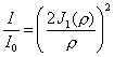 With a knowledge of the function as well as its derivative at tabulated data points, one can use higher order interpolation with less points. The Hermite interpolation algorithm used here uses a cubic interpolation with two data points. An additional advantage of this interpolation method is that both the function and its derivative are continuous across the data intervals. A C implementation of the solution of this problem is airy.c. There are two options for this program. The first choice will plot the Airy pattern at 0.1 increments from r=0 to 10. The other choice willl use the Bisection method to find the location of the first fringe. The relative intensity is positive for all values of r and the zeros of this function are also the local minimums. A numerical search of zeros using the actual relative intensity equation will be difficult. A much simplier algorithm is to look for zeros of the numerator which is simply the Bessel function. The first fringe is found to be at r = 3.8318042146766.